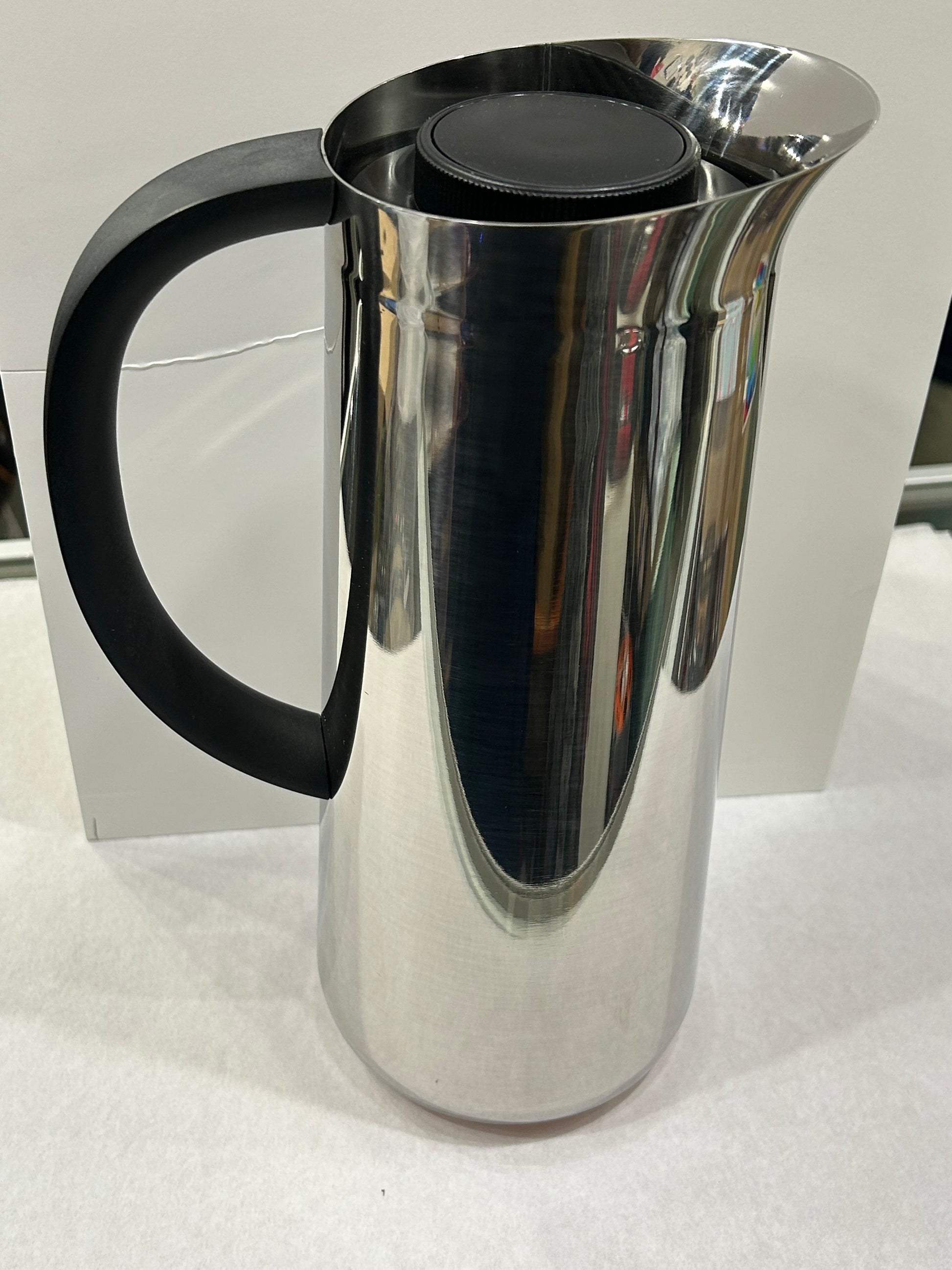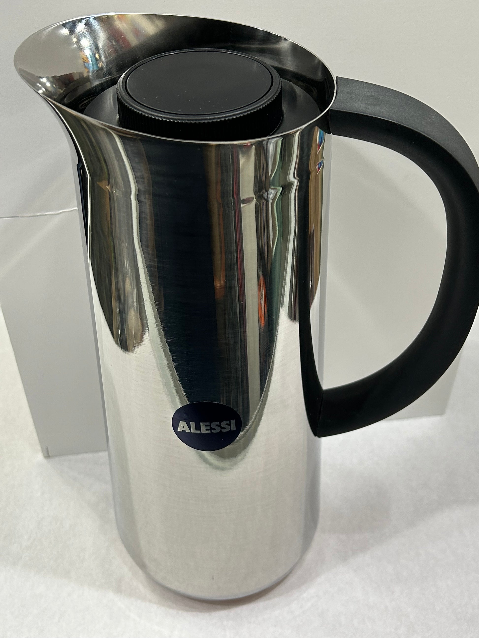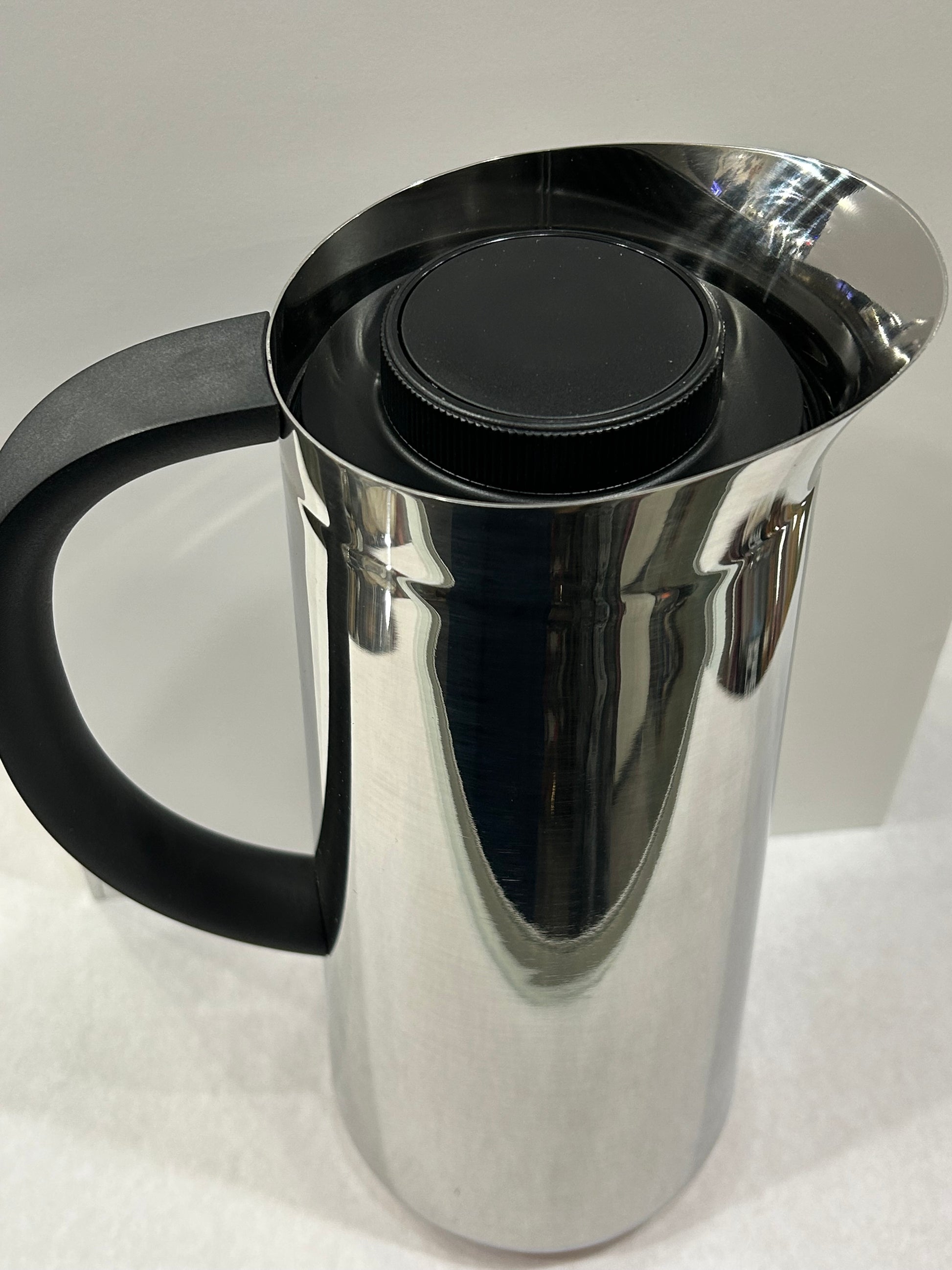 Alessi NOMU - Thermo Insulated Double Wall Jug in 18/10 Stainless Steel & thermoplastic resin- for Coffee or Tea. Caraffa Termoisolante a doppia parete in acciaio inossidabile 18/10 e résina termoplastica. Design Naoto Fukasawa, 2017.
